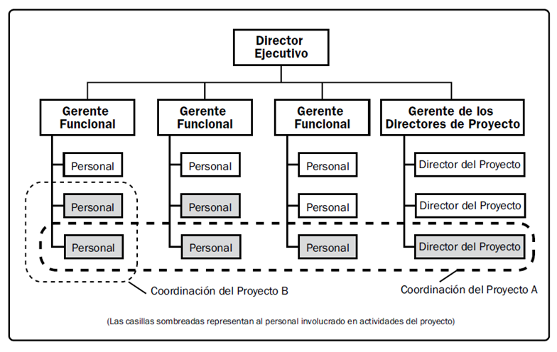 Siendo entonces las estructuras organizacionales de tipo funcional, es necesario migrar a otras formas organizativas más flexibles y adaptables a la Gestión de Proyectos, tal y como se muestra a continuación: